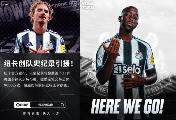 维萨加盟纽卡之后,加上此前喜鹊9000万欧(8500万+500万)官宣的沃尔特马德,他们一共消耗约1.5亿欧买下2位新援,刚好便是离队的伊萨克转会费。