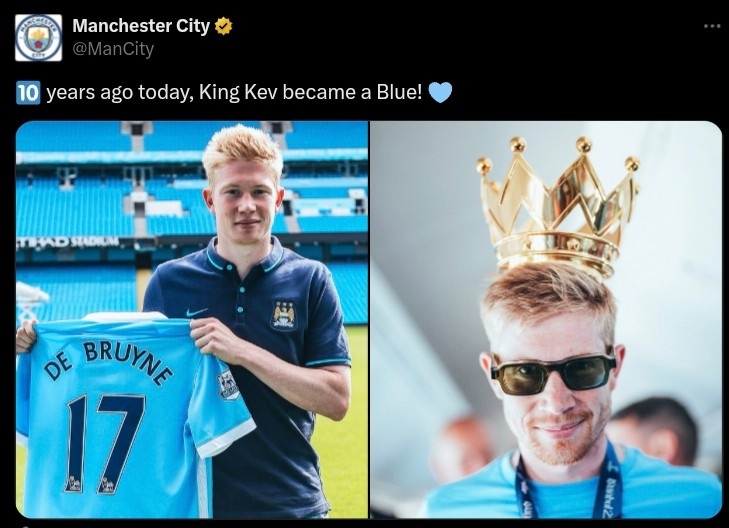 你的位置:欧协联直播 > 德甲 > 神话初始,曼城官推晒照:10年前今天,国王德布劳内成为球队一员