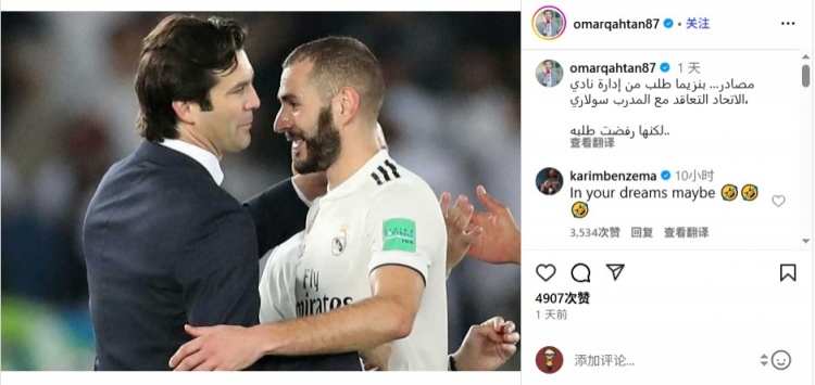 10月4日讯 记者Omar Qahtan报谈,本泽马条目吉达聚首引进索拉里动作主帅,但遭到斥逐,本泽马随后在驳倒区辟谣。