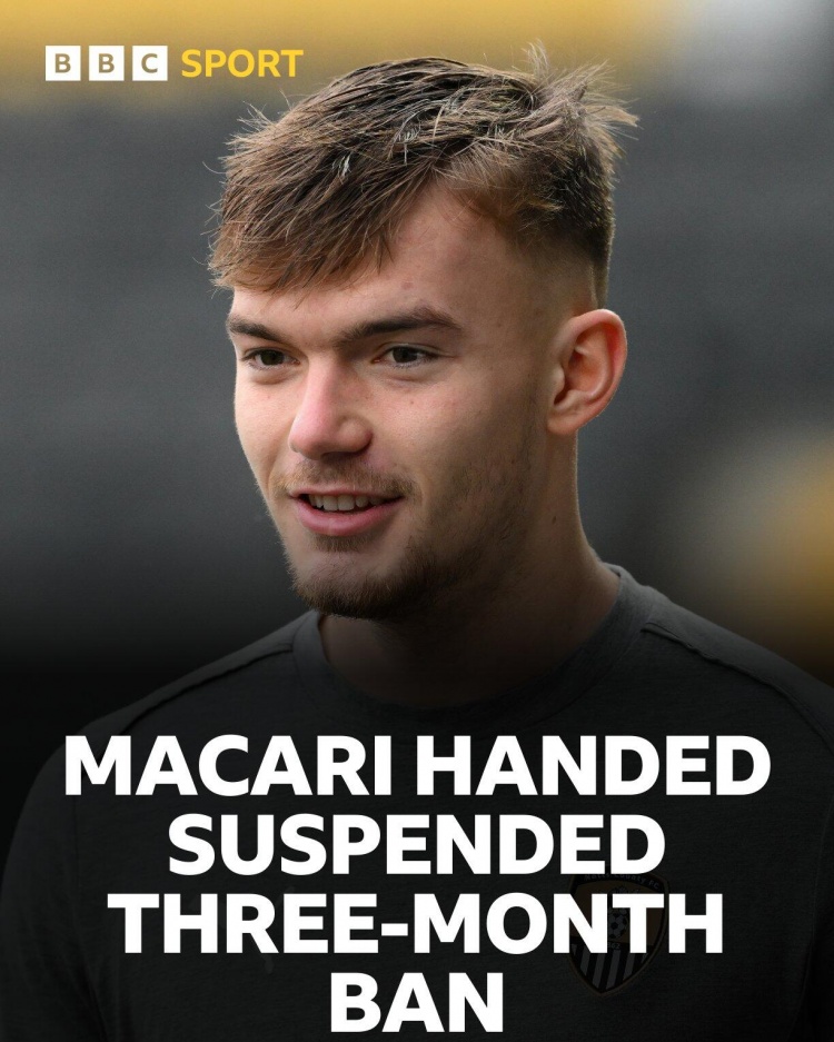 10月16日讯 BBC报说念,诺茨郡后卫刘易斯-麦卡里因在近三年内违犯博彩规定,被处以脱期三个月引申的禁赛处治。
