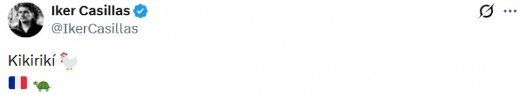 皇马名宿卡西利亚斯也在社媒发文惊羡姆巴佩献技帽子戏法的速率,配文:“Kikirikí”