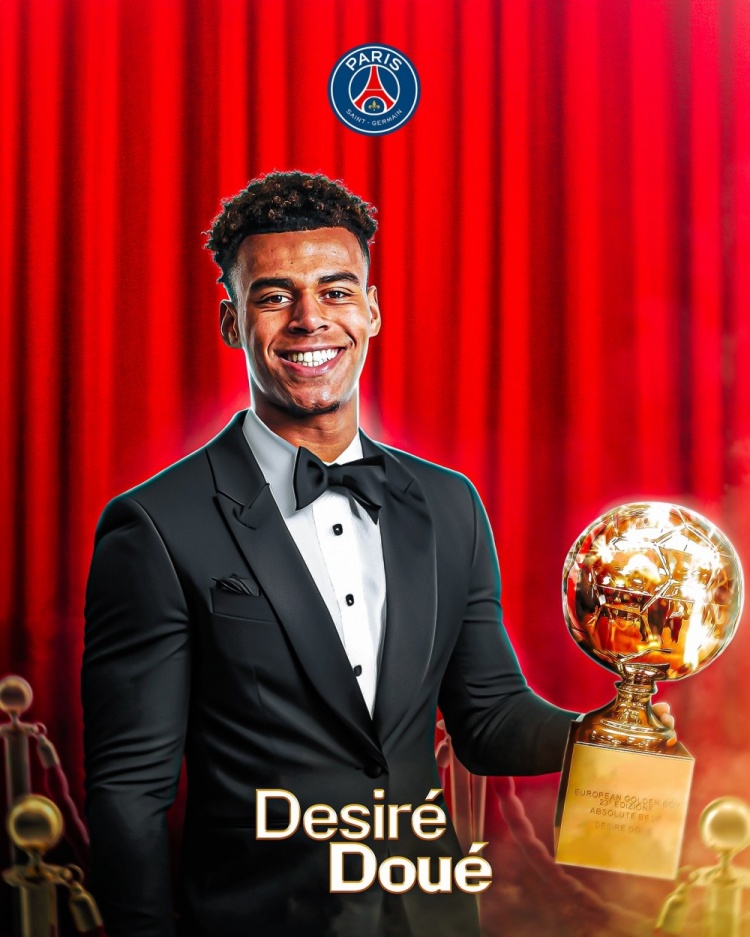 在《皆灵体育报》主持的欧洲金童奖授奖仪式上,杜埃领取了2025年金童奖杯,巴黎官方社媒晒出海报,配文:“欧洲金童奖。”