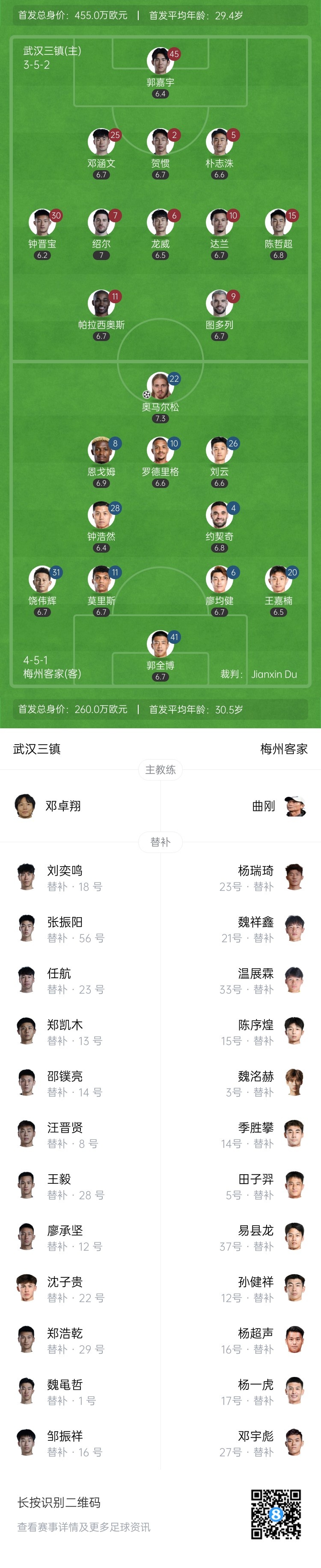8月10日讯 北京时间20:00,中超第20轮武汉三镇vs梅州客家,比赛在武汉体育中心体育场打响!上半场,帕拉西奥斯进球被判无效;奥马尔松帮助梅州客家客场取得领先!半场结束,武汉三镇暂时0-1落后梅州客家。