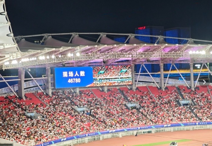 8月16日讯 8月16日晚,2025武汉城市足球超级联赛在武汉体育中心开幕,揭幕战由经开vs江夏。现场电子大屏显示:本场观赛人数为46780人。