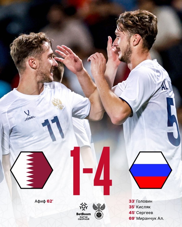 09月08日讯 昨晚足球友谊赛,俄罗斯4-1大胜卡塔尔,自2022年全球禁赛以来,友谊赛19场至今保持不败(不包括非正式友谊赛)。