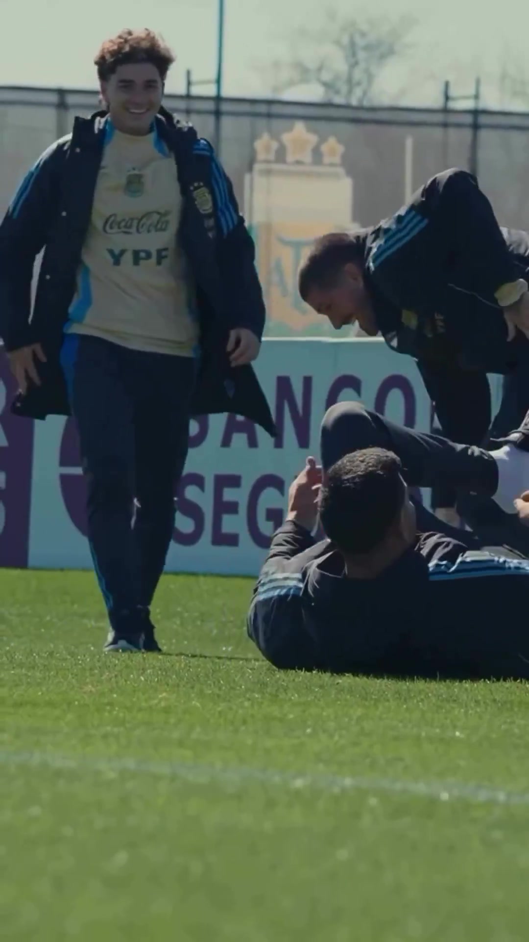 阿根廷球员们正在轻松备战这场比赛,阿根廷队社媒晒出训练花絮,德保罗开玩笑“恶意”铲翻中卫罗梅罗,抢到球权,而一旁的阿尔瓦雷斯看到这一幕忍俊不禁,露出了笑容。