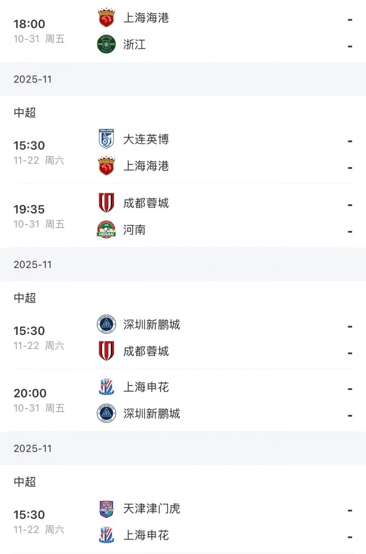 最后两轮海港vs浙江、英博,蓉城vs河南、深圳,申花vs深圳、津门虎!