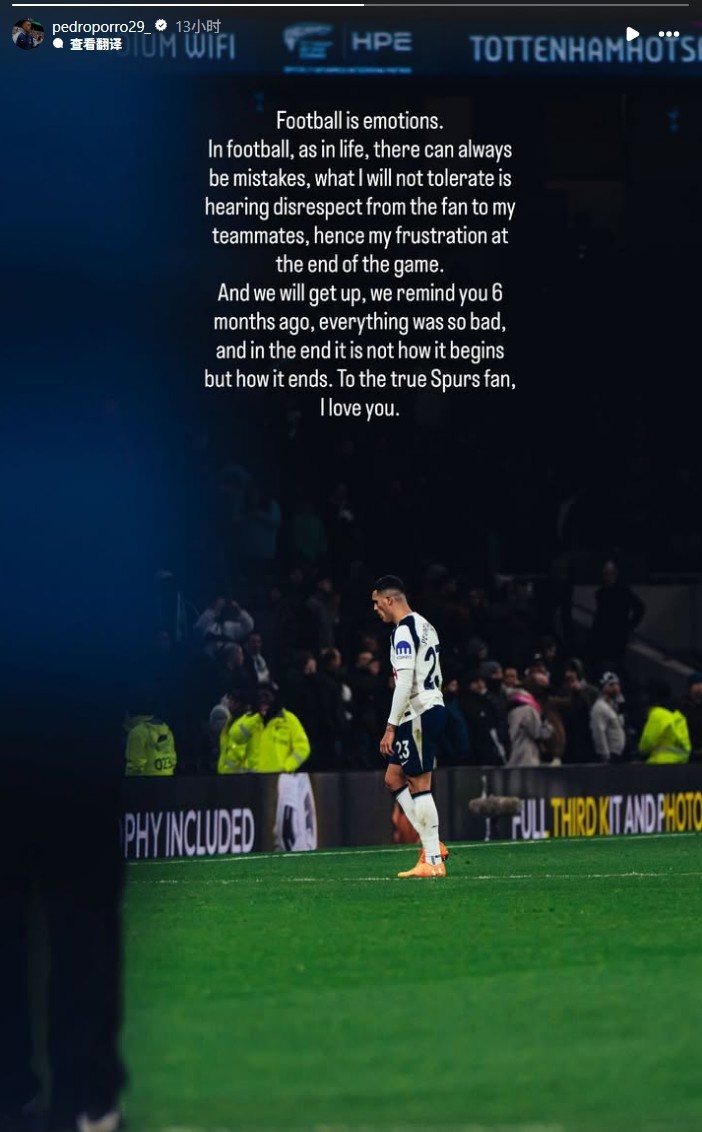 12月1日讯 热刺边后卫佩德罗·波罗在社交媒体发文,回应了球迷对自己的批评。