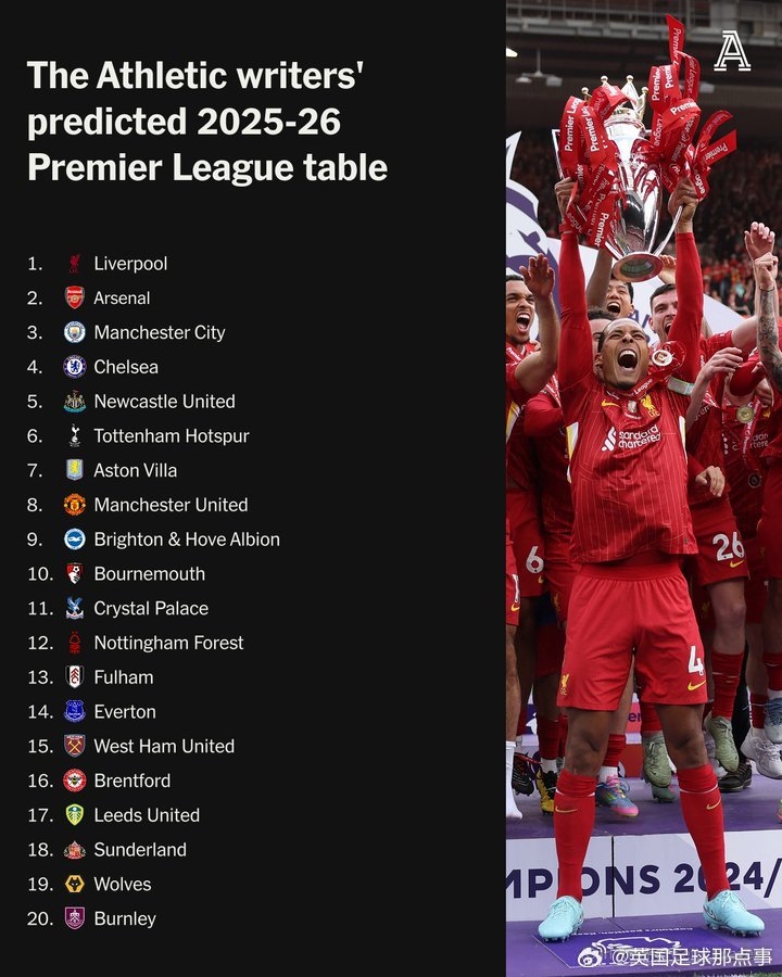 你的位置:欧协联直播 > 意甲 > TA臆想新赛季英超排行:利物浦夺冠,枪手曼城分列二三,曼联第8