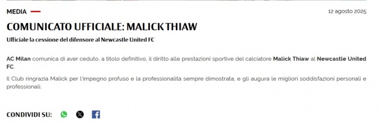 米兰官方写说念:“俱乐部文告依然将佳夫的开通代表权长久性转让给纽卡斯尔联,俱乐部感谢佳夫在效用时候所展现出来的奋力和业绩精神,并道喜他在个东说念主和业绩生活中齐赢得圆满得胜。”