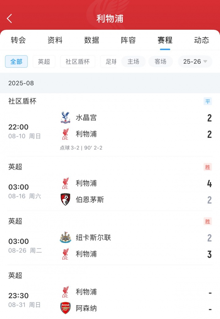 08月26日讯 英超第2轮,利物浦客场3-2绝杀纽卡斯尔。