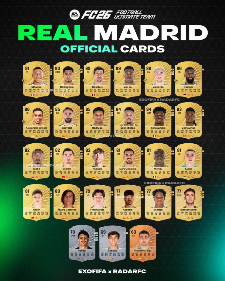 Exofifa爆料皇马球员FC26评分: