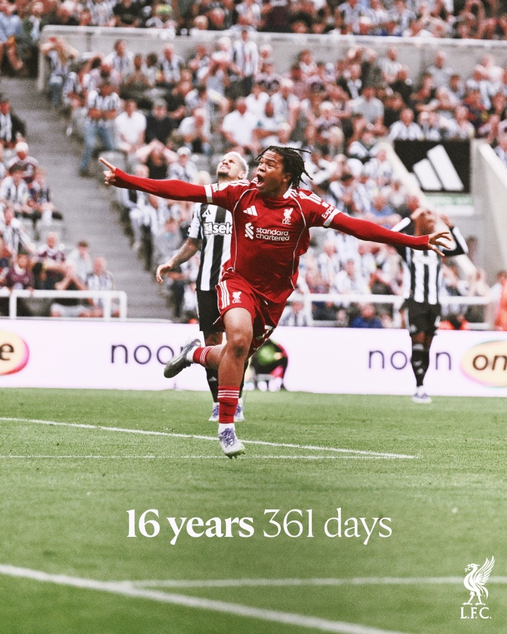 08月26日讯 在今天凌晨进行的英超第二轮纽卡斯尔2-3利物浦的比赛中,利物浦小将恩古莫哈替补出场为球队打入了绝杀进球,他也以16岁361天的年级,成为利物浦队史最年青的进球球员。