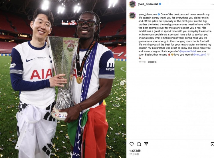 但这即是足球东谈主生。祝你在新的篇章里一切胜利,我的一又友、我的队长、我的年老。能意志你、碰见你是我的行运。祝你好运,热刺的外传东谈主物,咱们很快会相逢的,血脉伯仲 🩸🤩 爱你,外传 @孙兴慜 🤍🙏🏾