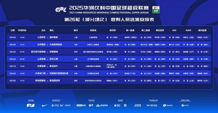 9月26日讯 中超联赛公布第26轮裁判安排,麦麦提江法则国安vs英博的比赛,与此前的报说念一致,外籍裁判亚历山大-金法则亚泰vs海牛的保级大战。