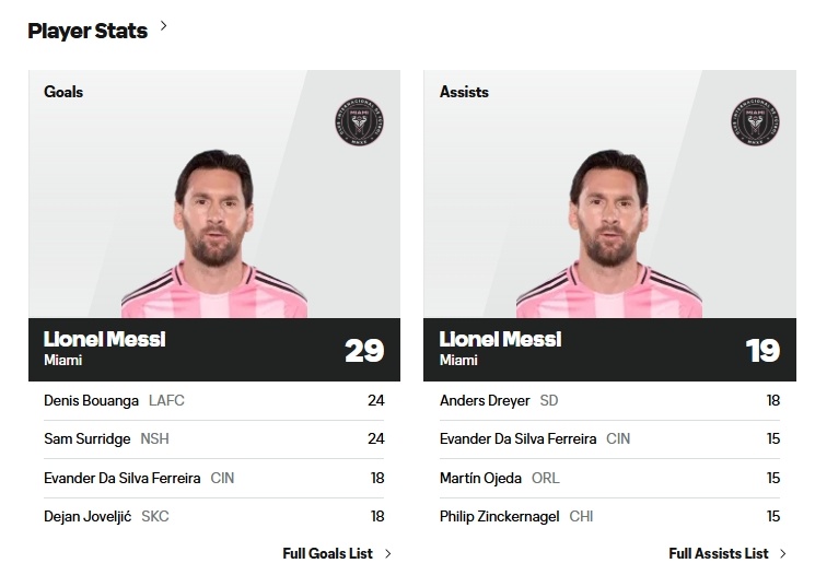 梅西(迈阿密外洋)29球