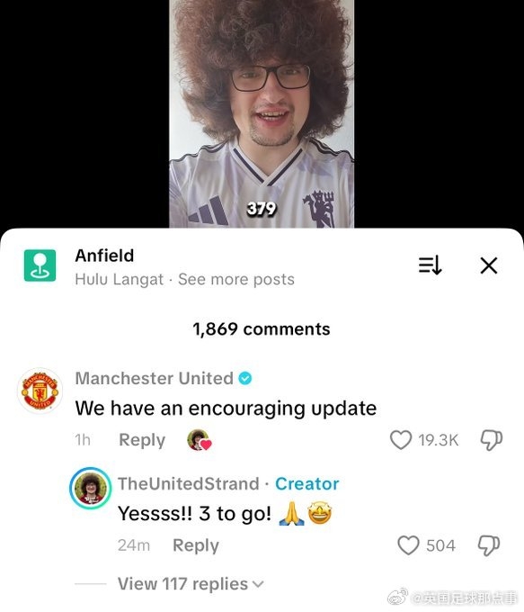 被官方翻牌了!曼联球迷“蓄发哥”曾立誓主队5连胜才剃头,昨晚绝杀利物浦获得两连胜后,曼联官媒点赞指摘了他蓄发379天的视频: