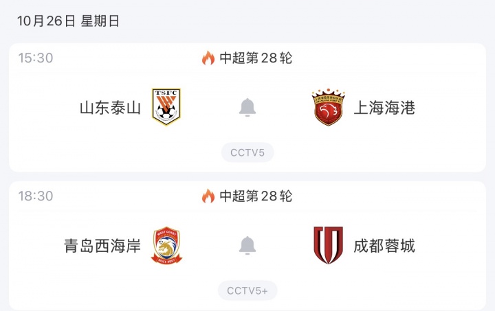 本周日海港将在联赛客场挑战泰山,逾期2分的蓉城将客场挑战西海岸。