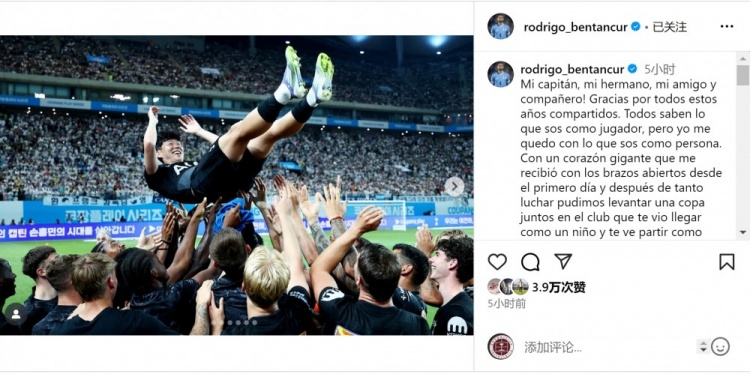 感谢你所作念的一切,昆季,咱们在俱乐部会额外思念你!祝你和你的家东说念主在新征途中一切获胜!但愿很快能再次重逢,传说!我额外爱你!”