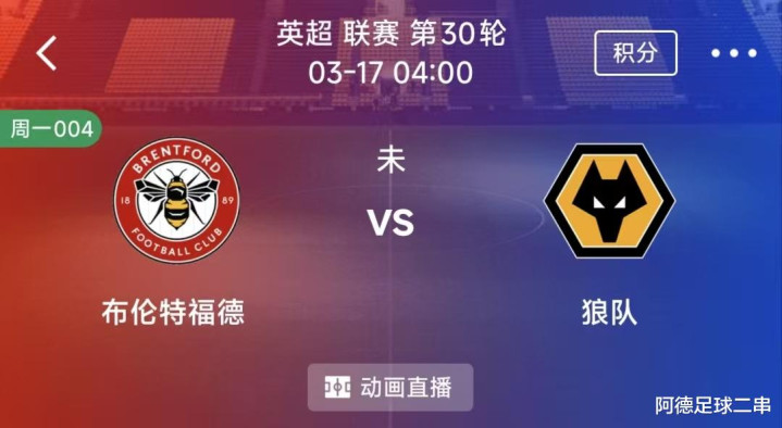 004英超:布伦特福德VS狼队 时间:2026-03-17 4:00 场地:布伦特福德社区运动活动 场