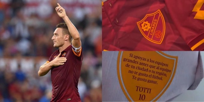 8月4日讯 西班牙第四级别球队利纳雷斯竞技发布了一款完好意思以罗马城和托蒂为灵感缱绻的球衣。