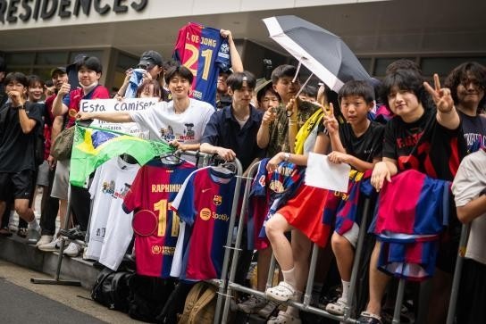 约百名球迷手合手旗子、球衣和口号在球队下榻栈房守候。从日本到韩国,巴萨长久受到当地拥趸的柔软追捧,大邱也不例外。这场亚洲冒险的终章,将至彻夜在大邱通顺场书写终了。