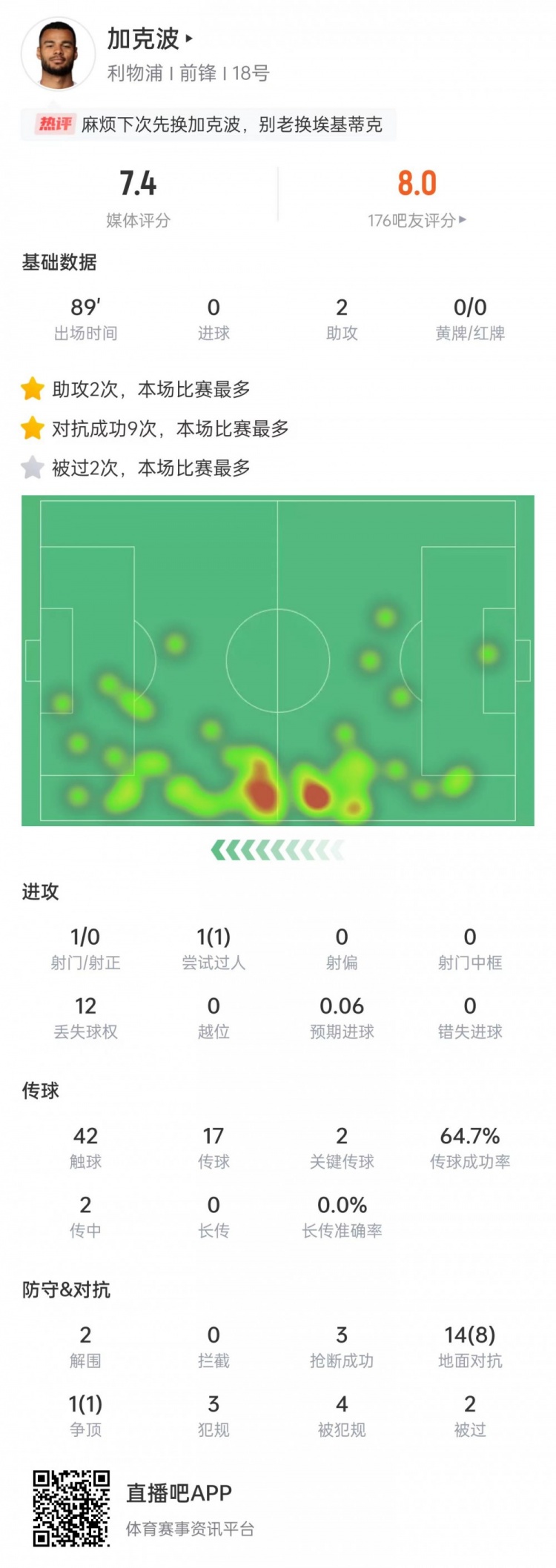 8月26日讯 英超第二轮比赛,加克波送出2记助攻,匡助利物浦客场3-2打败纽卡。