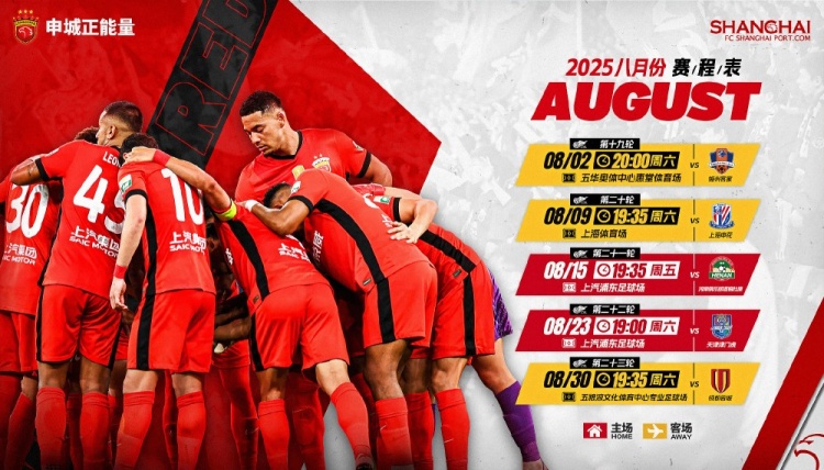 ⏰海港队8月赛程