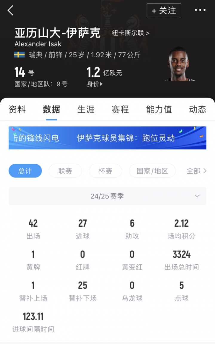 伊萨克与纽卡的条约还剩3年,纽卡一经启动寻找替代者,当今他们的态度仍然是伊萨克非卖品。
