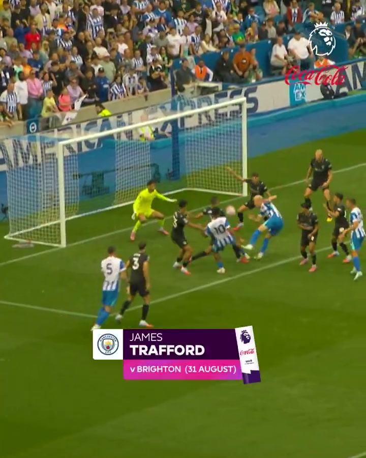英超第3轮,曼城客战布莱顿,此役第88分钟,布莱顿右侧角球契机,小禁区线范赫克的攻门被特拉福德挡出。