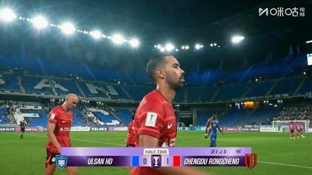9月17日讯 亚冠精英联赛第一轮,成齐蓉城上半场客场1-0卓绝蔚山HD。