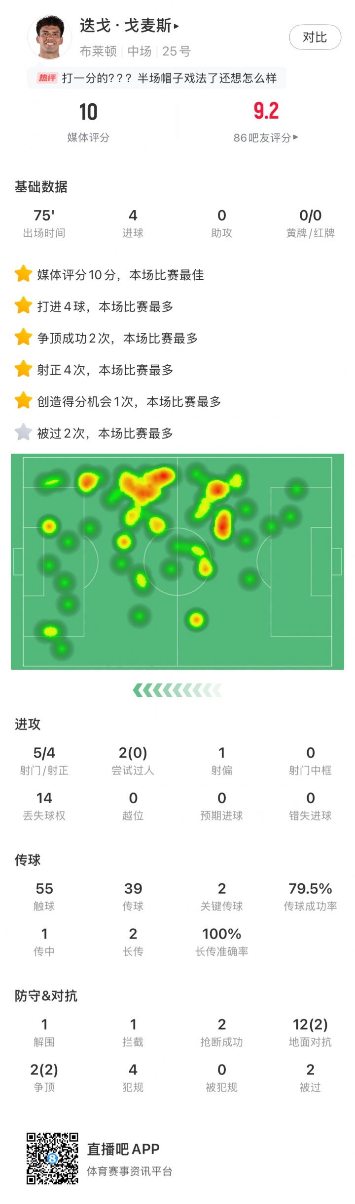 迭戈-戈麦斯现年22岁,2023年加盟迈阿密海外,2025年头以1300万欧转会费从迈阿密海外加盟至布莱顿。上赛季16场英超出场本事511分钟,1球1助。