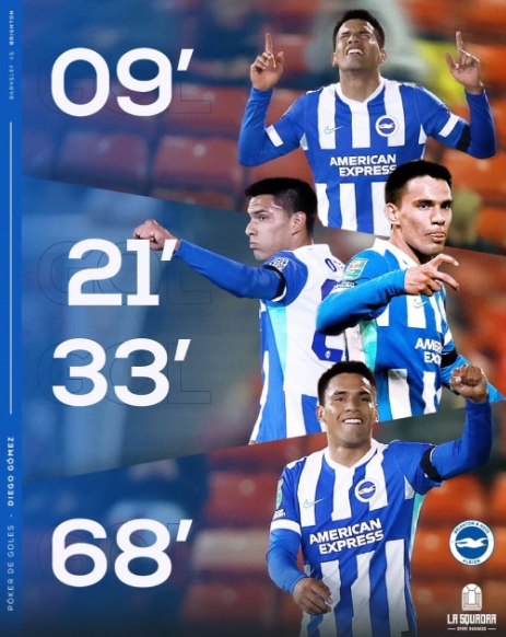 09月27日讯 联赛杯第三轮,布莱顿6-0巴恩斯利。本场比赛,曾遵循迈阿密海外的迭戈-戈麦斯代表布莱顿演出了大四喜。戈麦斯在采访中说念到了他创造历史的推崇、场上位置以及来自巴拉圭国度队的道贺。