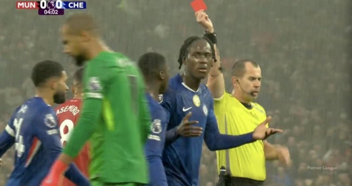 上轮英超,十东说念主切尔西1-2不敌十东说念主曼联,比赛开场5分钟,切尔西门将桑切斯就因出击放倒姆伯莫被红牌罚下,其时查洛巴对桑切斯“逝世谛视”。