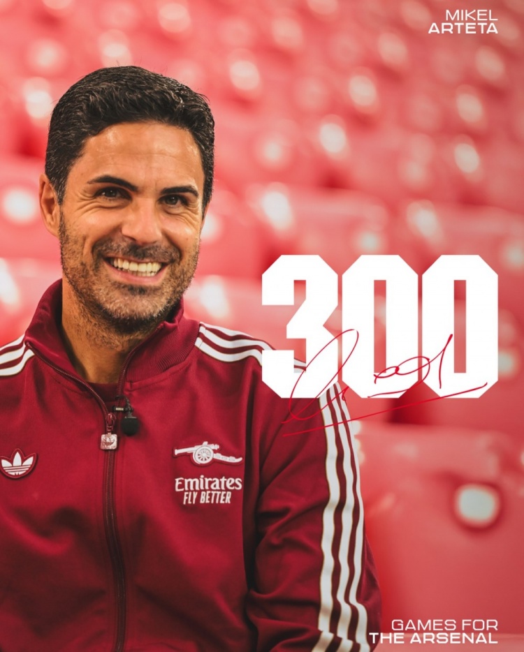 此役将是阿尔特塔抓教阿森纳的第300场比赛,阿森纳官方社媒晒出海报,配文:“不凡的树立,阿尔特塔将迎来抓教阿森纳的第300场比赛。”