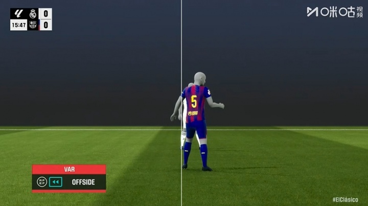 姆巴佩超等寰宇波破门,VAR介入后判定姆巴佩越位,进球取消!转播给出了越位划线图!
