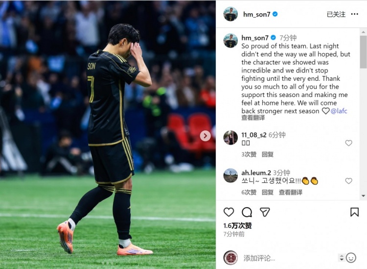 此役孙兴慜梅开二度,点球大战射失,最终缺憾落败,他在外交媒体上写谈:“为球队感到极端骄气,昨晚比赛的成果并非咱们所愿,但咱们展现了难以置信的韧性,战争到终末一刻。”