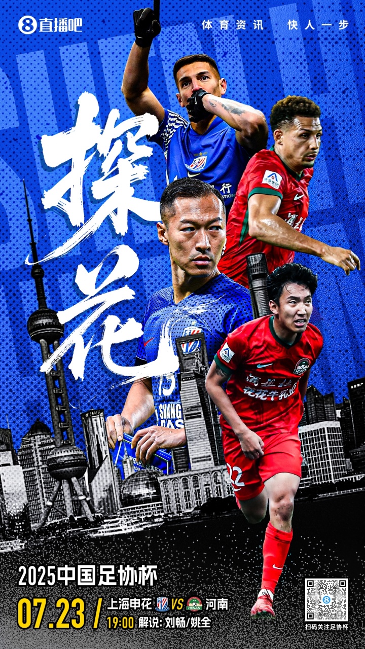 今晚19:00,上海申花将主场迎战河南,刘畅和姚全将讲明本场比赛;19:35,另一场1/4决赛开战,青岛海牛主场对阵成王人蓉城,本场比赛将由李娜娜带来讲明。