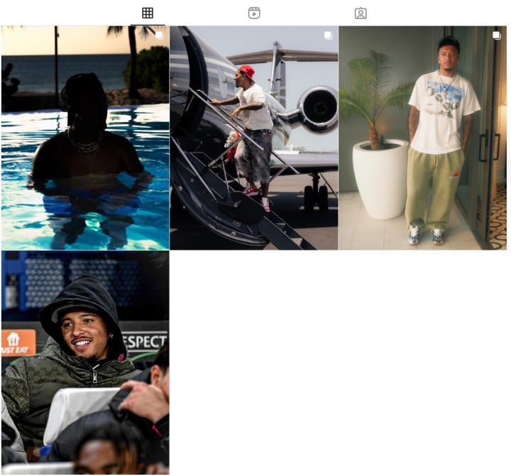 在桑乔的ins上,与足球干系的社媒险些还是沿途被掩饰,只留住了一张切尔西时辰坐在替补席上的像片,以及三张糊口照。