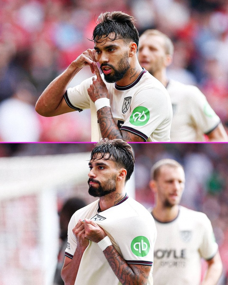 进球后,帕奎塔以一个极度的状貌庆祝:先作念出接电话的算作,然后把“电话”扔掉,接着亲吻了西汉姆联的队徽。