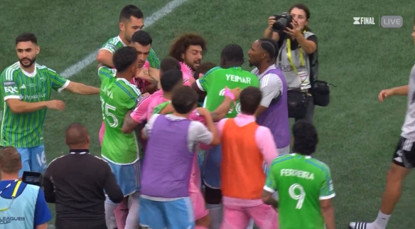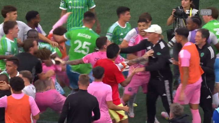比赛王法后迈阿密球员和对方球员还有责任主谈主员发生突破,拳脚相向!