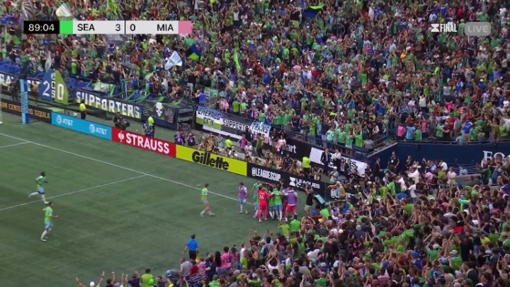 第89分钟,西雅图海湾东说念主罗斯洛克破门,3-0迈阿密海外,险些锁定了本场比赛的得手。