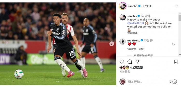 桑乔社媒晒出比赛相片,并写说念:“很振作献技维拉首秀,天然遵循不是咱们思要的,但这是不错陆续英勇的基础。”