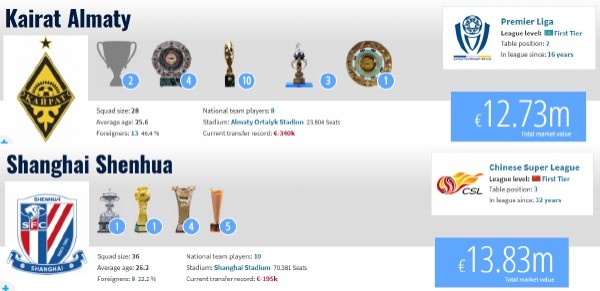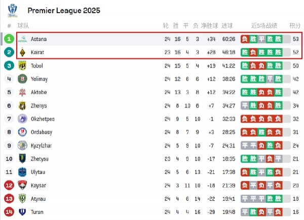 在哈萨克斯坦国内联赛,阿斯塔纳和阿拉木图凯拉特的竞争也长短常利弊。本赛季踢完24轮后(全年有26轮联赛),阿斯塔纳拿到53分领跑积分榜。阿拉木图凯拉特少赛一场拿到52分,若是可以赢下剩余的3场比赛,他们将会卫冕哈萨克斯坦国内联赛冠军。