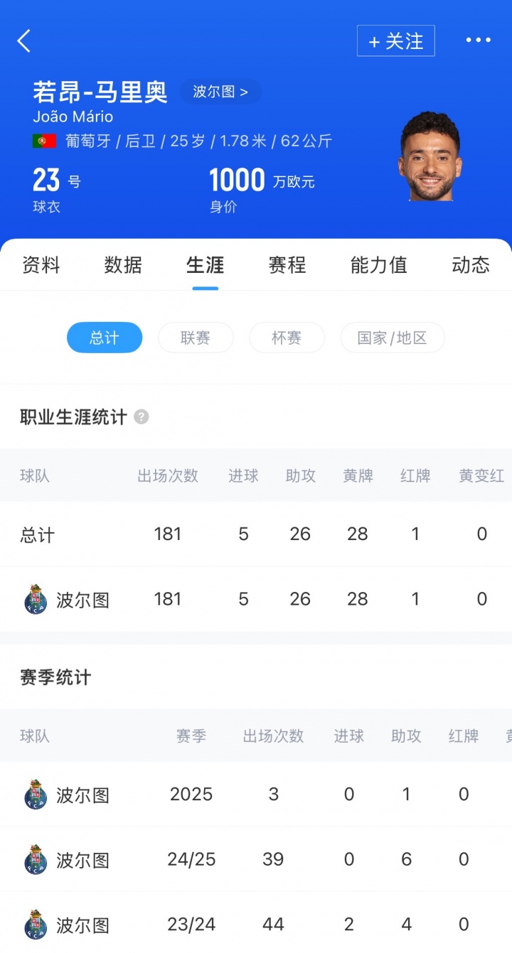 在葡萄牙赛场,他共获取包含联赛和杯赛在内的9座奖杯,并曾是2018/19赛季后生欧冠联赛冠军威望的一员。而在国度队层面,他于2023年11月对阵列支敦士登的比赛中完成葡萄牙国度队首秀。
